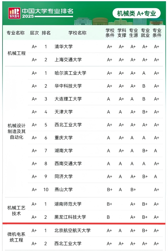 近日2025软科中国大学专业排名”正式发布,ok138cn太阳集团529机械工艺技术专业继2024年首次获评A+后,2025年再次荣登A+行列,继续排名全国第二。连续两年蝉联该评级,充分彰显了公司机械类专业在国内的较高地位和持续发展实力。