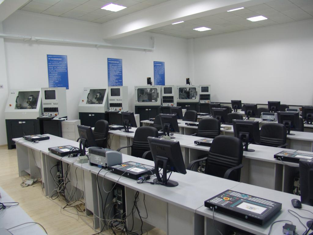 CNC实验室成立于2005年3月,占地面积130平方米,实验设备主要从奥地利引进,现有PC-D426数控车床和PC-F426数控铣削中心各两台、员工用计算机20台、EXSL-WIN7软件20套、SIEMENS模拟键盘20个。数控机床采用目前世界先进SINUMERIK 840D数控系统和德国EXSLWIN7编程与模拟系统。