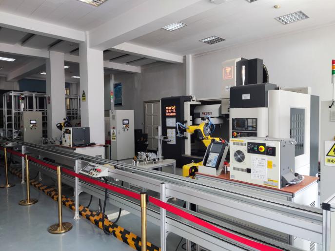 智能制造加工系统实验室,建立于2020年9月。设备包括:倍速链单元,料库单元,数控车床,数控加工中心,上下料机器人,视觉检测单元等。设备总价250余万元。现代化的自动生产设备(自动生产线)的最大特点是它的综合性和系统性,在这里,机械技术、微电子技术、电工电子技术、传感测试技术、接口技术、信息变换技术、网络通信技术等多种技术有机地结合,并综合应用到生产设备中;而系统性指的是,生产线的传感检测、传输与处理、控制、执行与驱动等机构在微处理单元的控制下协调有序地工作,有机地融合在一起。