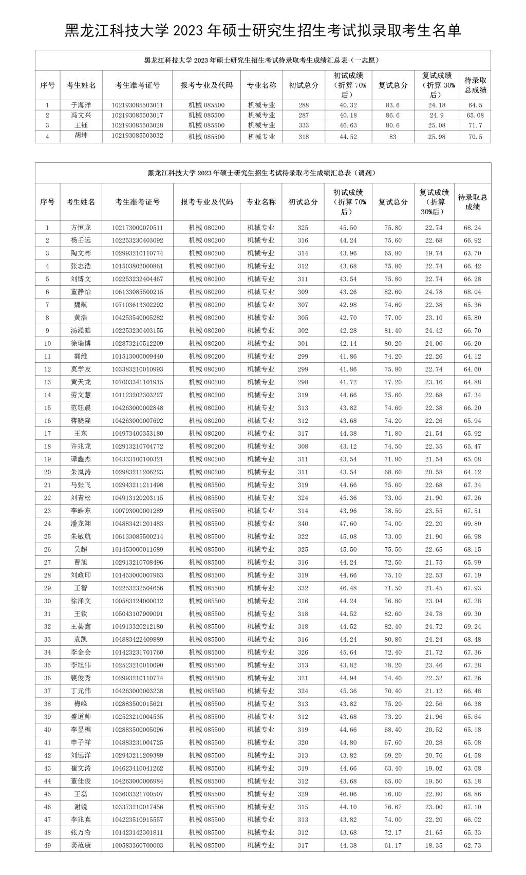 太阳成集团官方网站2023年硕士研究生招生考试拟录取考生名单