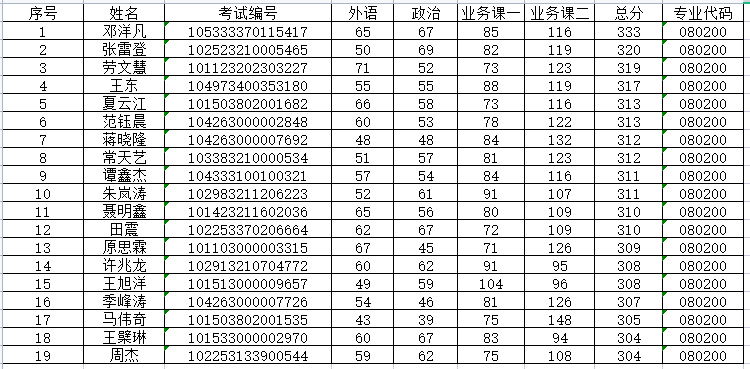 机械工程(080200)调剂复试名单: