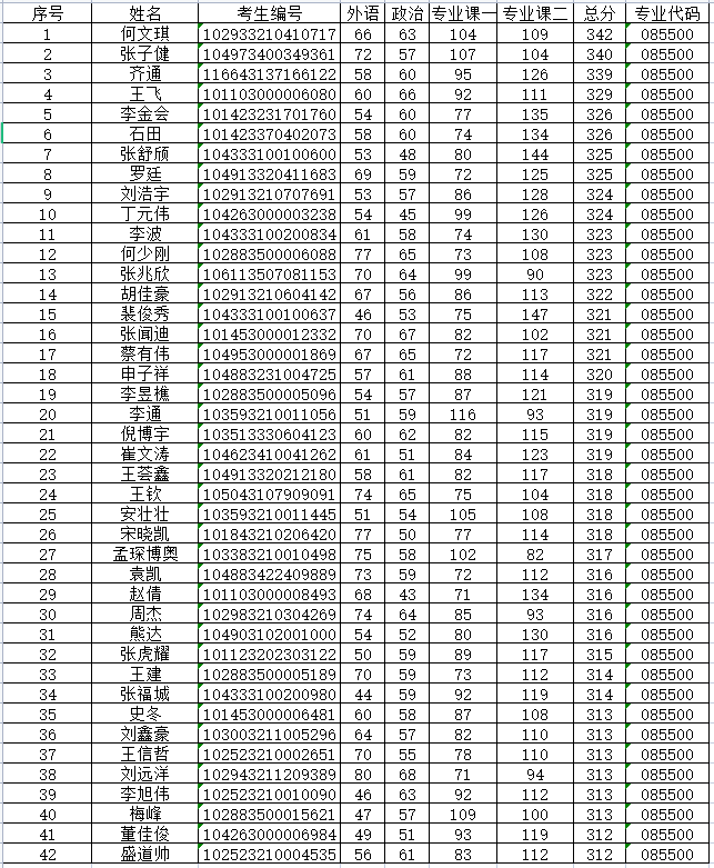 机械(085500)调剂复试名单: