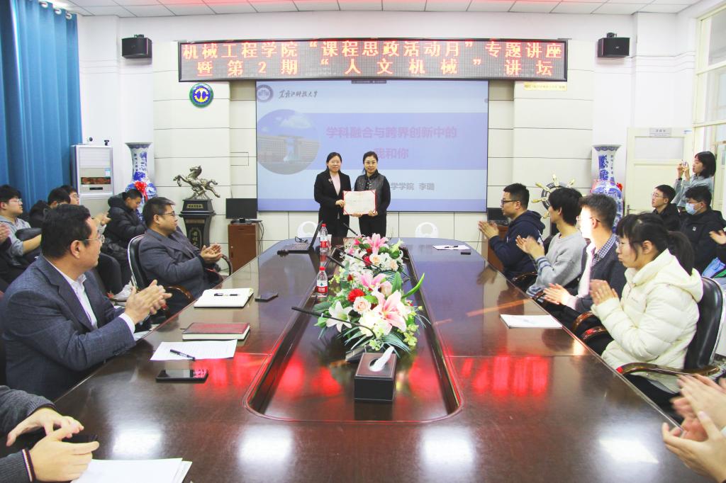 讲座伊始,由公司经理唐庆菊为李璐老师颁发了“人文机械”讲坛特聘专家聘书;之后李璐老师以“学科融合与跨界创新中的我和你”为题,从人类探索太空的步伐导入,在新工科与新文科的视域下,把人类观察事物维度的变化作为基本视角,从“加速剂”这一关键词入手,讲述了人文素养中所蕴含的人文精神、工匠精神和家国情怀的内化作用,阐释了由内而外、内外兼修的人文行为的重要性。从“减速器”这个关键词入手,以交叉学科的视角,运用创新教学的思维模式,以中国当代著名作家路遥的创作经历和代表作品的意蕴挖掘为线索,辩证地解析了“减速”与“加速”之间的逻辑关系。最后,李璐老师和现场员工进行了互动交流。