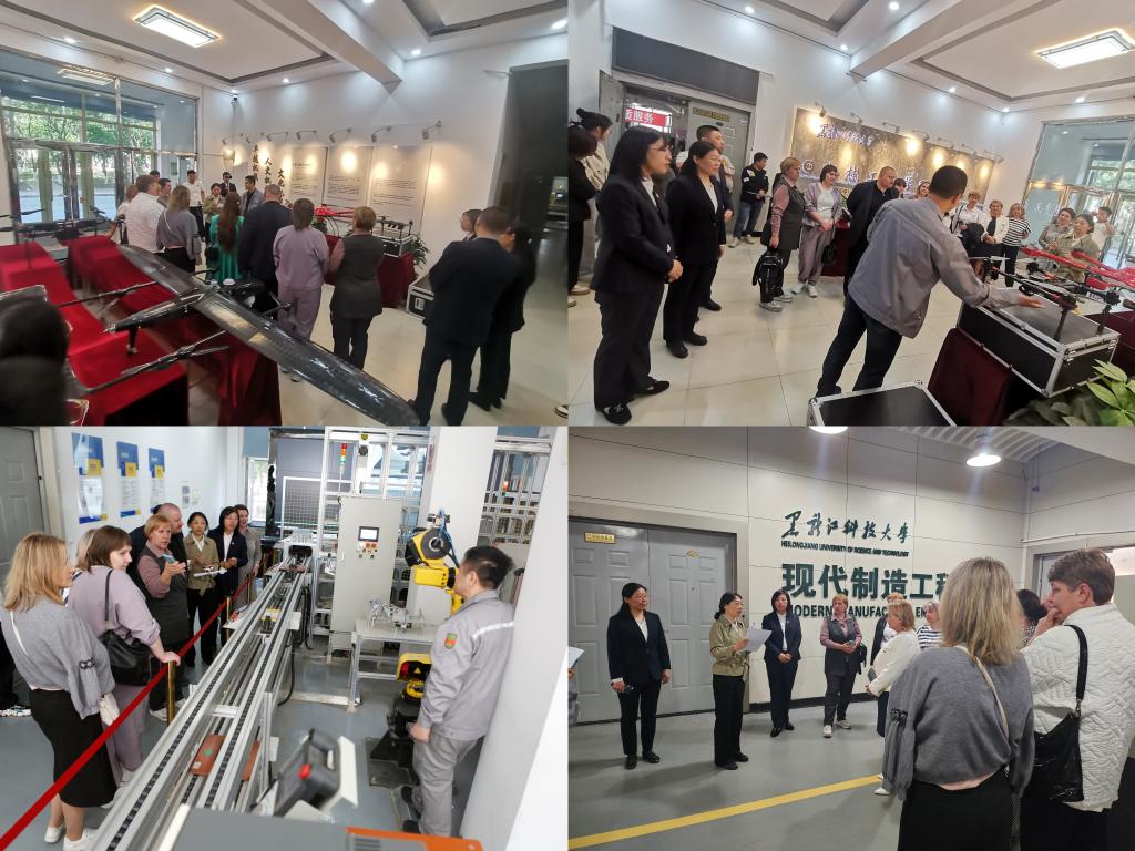 交流会后,中俄双方人员参观了公司自主研发的无人机、现代制造中心及智能制造生产实验室等。俄方代表对公司的热情接待表示衷心感谢,对取得的成绩表示赞赏,并诚挚邀请公司各位领导和老师去俄方学校进行交流,希望中俄除了在教学及科研等领域开展合作外,还能共同指导员工参与学科竞赛项目等。学院副经理齐立涛、副处级辅导员毕强向俄方代表团赠送了印有学校校徽及学院院徽的礼物。最后,中俄双方齐声共唱俄罗斯传统歌曲“喀秋莎”,交流会在俄方代表团的依依不舍中圆满结束。