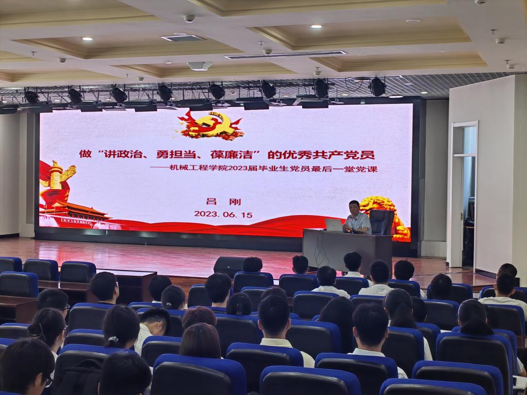 会后,学工办主任戴劲带领全体员工党员重温了入党誓词,此次党课进一步引毕业生党员们牢记母校嘱托,担当青年使命,以昂扬姿态踏上人生的新征程,以奋进青春建功新时代,以实际行动为母校增光、为党旗添彩,践行卓越机械、人文机械、文化机械的理念,让青春在全面建设社会主义现代化国家的火热实践中绽放绚丽之花。