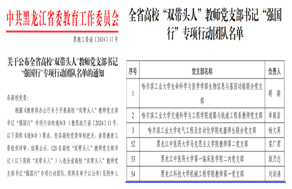公司教师第一党支部成功入选全省高校“双带头人”教师党支部书记“强国行” 专项行动团队。