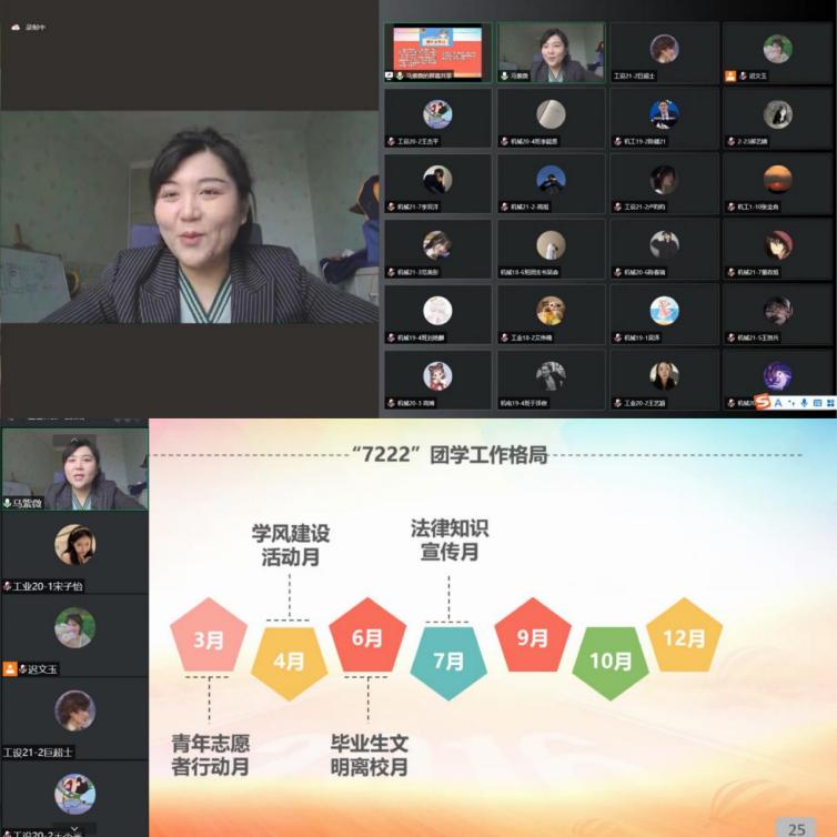 马紫微以《高校基层活力团支部建设研究》为题,为全体学员上了生动精彩的开班第一课。她围绕创建活力团支部的意义、新时代活力团支部创建的挑战、活力团支部的类型、活力团支部的创建途径、工作寄语等五方面内容与大家进行了交流。系统讲解了“7222”团学工作格局下新时代活力团支部的开展形式,为如何建设活力团支部提出有效的途径和方法。最后,马书记向全体团支部书记提出工作寄语,一是把握员工特点和成长规律,针对不同年级的青年团员,分门别类开展活动。二是树立终身学习的理念,始终把学习当作第一要务。