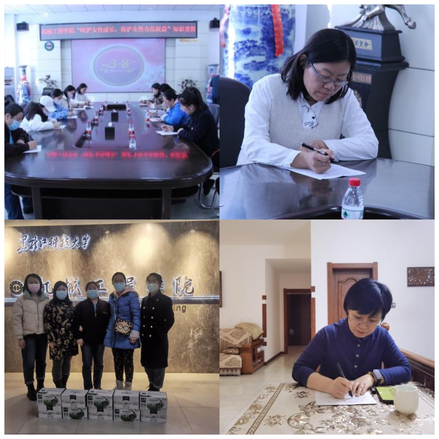 本次知识竞答活动采用线上线下相结合的方式进行,在校女教师在学院会议室集中答题,居家女老师采用线上形式参加答题。全院41名女教师积极参与,认真答题。