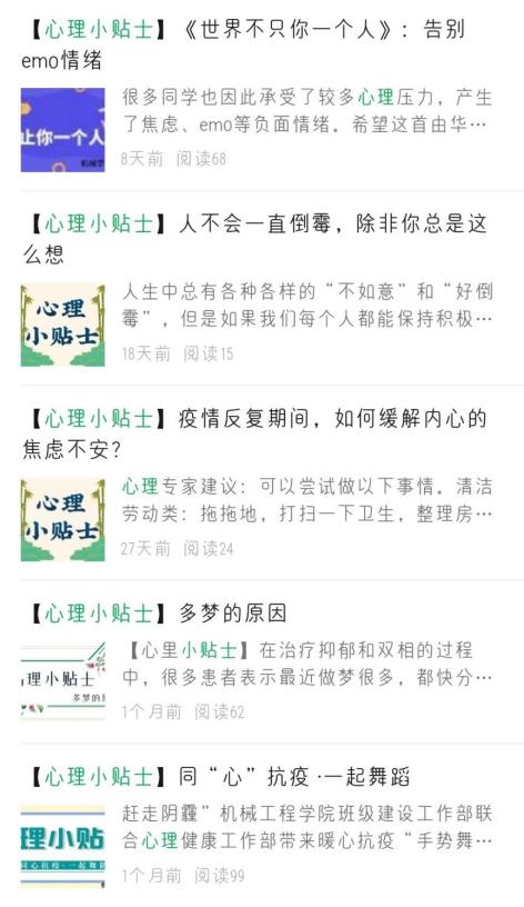 用心“做”,打造公司心理健康特色品牌。公司通过“黑科大机械学工”微信公众号,每周向全院员工推送一篇“心理小贴士”,普及心理健康知识,传授情绪调节技巧;依托学院《啮合》特色刊物,打造“心海泛舟”专栏,将传授的心理健康知识荟萃成营养丰富、“色香味”俱全的“心灵鸡汤”,为员工提供抒发情绪的有效载体。