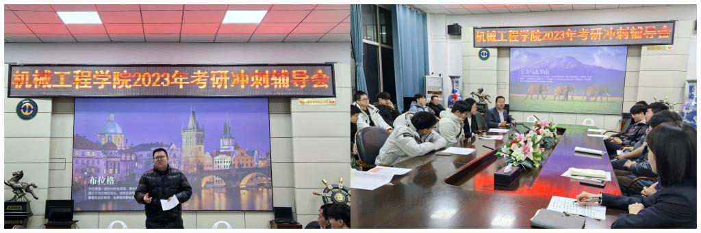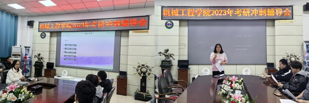 为了进一步助力考研员工成功“上岸”,力争实现学院2024届本科毕业生考研率再上新台阶,12月8日下午,机械工程学院在二楼会议室举办了考研冲刺辅导会。学院副处级辅导员毕强,毕业年级辅导员迟文玉和杨非凡,全体考研员工参加了辅导会。