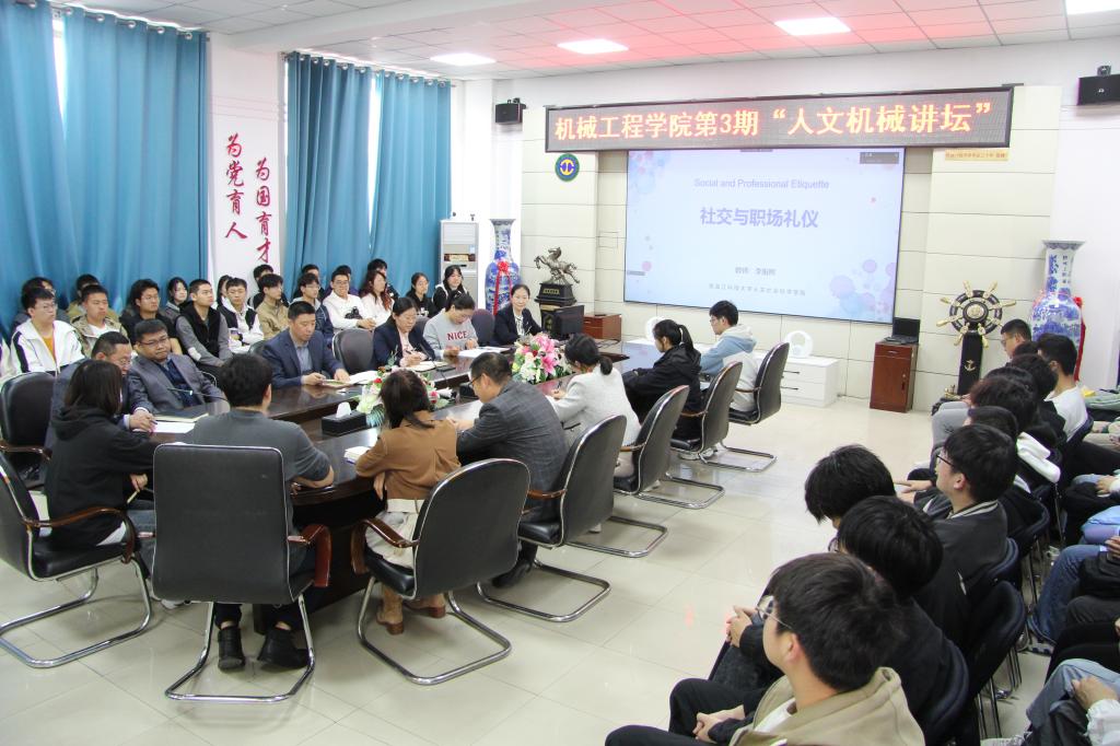 讲座上,李阳熙老师以《社交与职场礼仪》为题,围绕“礼”的文化内涵、个人形象礼仪、待人接物礼仪和沟通礼仪四个方面进行了深入讲解,特别是结合同学们当下的学习与生活、未来求职签约和步入职场后的应知应会等场景,从语言礼仪、肢体礼仪、社交礼仪、商务礼仪等方面作出了标准规范介绍,用具体案例展现了日常学习、工作和生活中经常用到的礼仪常识。