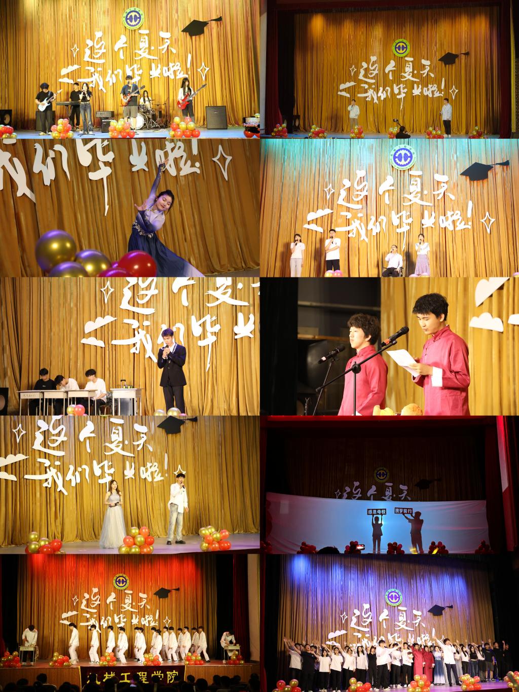 本次毕业晚会以“踔厉奋发新征程·笃行不怠向未来”为主题,分为“追梦·破浪前行”“挥别·青春告白”和“奋斗·征程启航”三个篇章,节目涵盖歌曲、舞蹈、光影剧、相声、武术表演等多种形式。歌曲《一路向北》《再见杰克》以青春洋溢的节奏为晚会拉开帷幕;舞蹈《热力节奏》展现了机械学子青春的激情与热血;《若月亮没来》《一程山路》《盛夏》《再见》等青春歌曲勾起了员工们的校园回忆,唤起现场观众的共鸣;相声《梦想清单》、光影剧《龙傲天的前二十二年》幽默中诠释浓浓的同窗情和师生情,现场掌声连绵不绝;舞蹈《乌兰巴托的夜》、武术表演《墨舞诵艺,追梦未来》彰显机械学子才华活力的青春色彩,描绘出一幅如诗如画的机械画卷;全体辅导老师表演的节目《青春有我》将晚会推向高潮,表达了对毕业生的不舍和祝福,为他们注入了奔赴下一段旅途的热忱和勇气;最后,晚会在全体演出人员合唱《光阴的故事》中落下帷幕。
