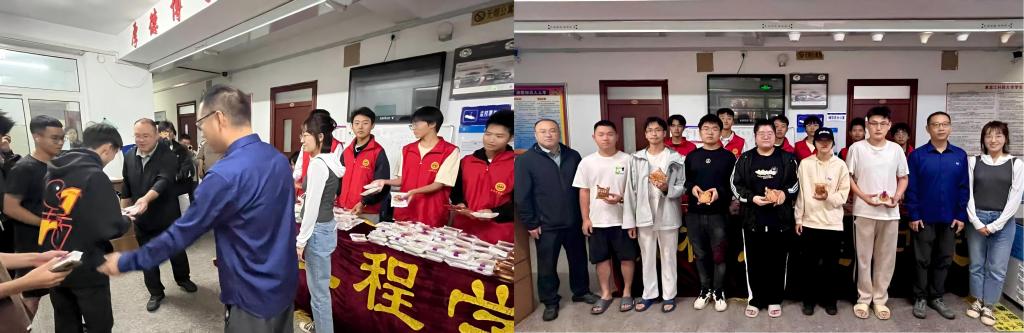 活动现场,老师们将印有“中秋佳节·匠心机械”字样的学院专属月饼发放到员工手中,并与员工亲切交流。仔细询问留校员工假期学习生活情况,叮嘱员工注意安全,祝福员工学业进步、节日快乐。收到月饼的员工脸上都洋溢着喜悦,纷纷表示这份意外的“惊喜”让身处异乡的学子感受到了学院的关怀与温暖。