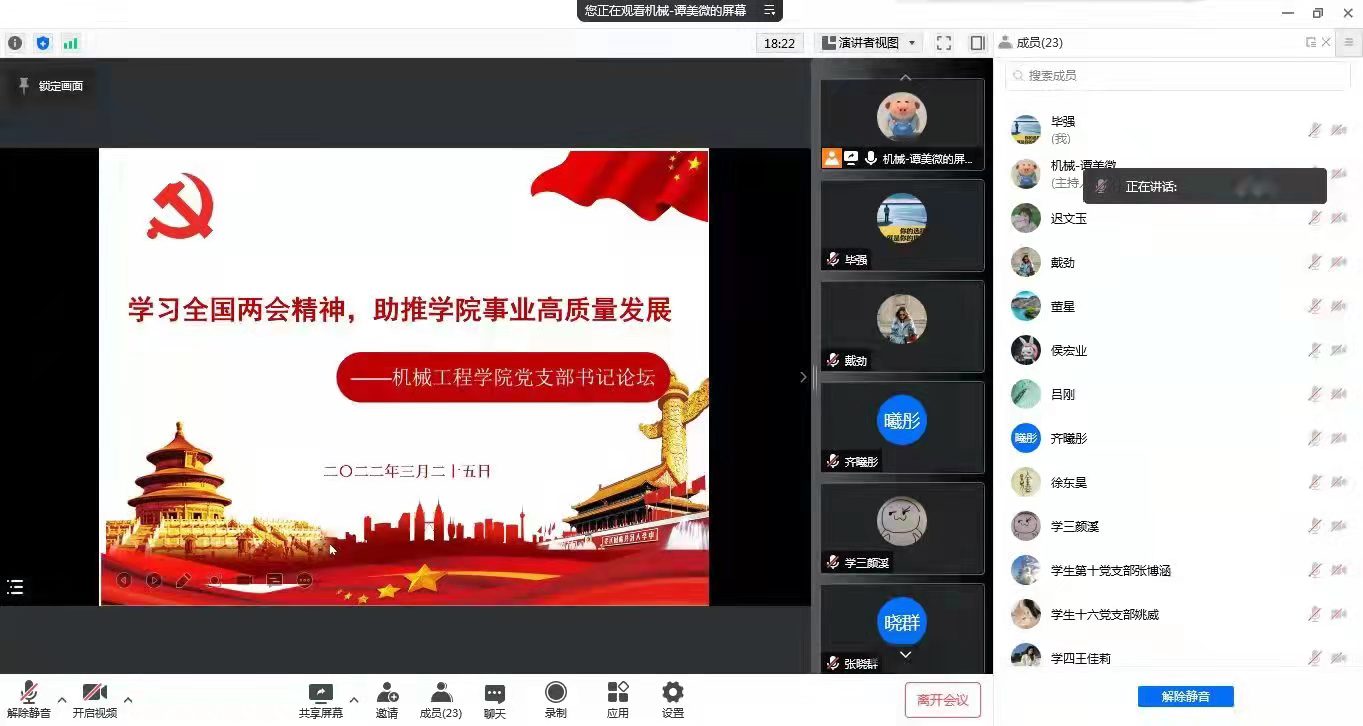 根据公司党委组织部的安排部署,3月25日下午,ok138cn太阳集团529以“学习全国两会精神,助推学院事业高质量发展”为主题,举办了“党支部书记论坛”。论坛以视频会议形式进行。公司党委委员、全体党支部书记参加了会议。会议由党委副书记徐东昊主持。