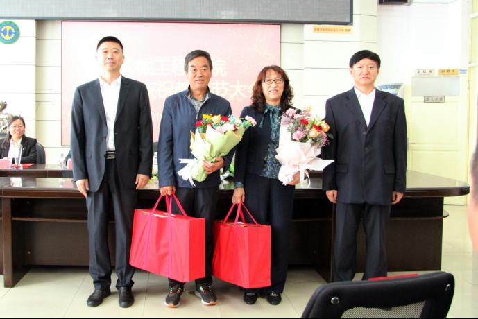 会上,首先举行了老教师荣退仪式。公司党委书记吕刚、经理董星为今年8月份刚刚退休的任昌玉、李阳星两位教师送上了鲜花和纪念品。两位退休教师分别发表了退休感言,他们回顾了自己几十年的工作经历,真切地表达了对学院和同事的不舍之情,并对领导和同事的关怀表示诚挚的谢意。经理董星代表学院作了讲话,他充分肯定了两位老师在工作中的勤勤恳恳、任劳任怨、甘于付出、乐于奉献的优秀表现和突出业绩;衷心感谢两位老师一直以来为学院发展建设做出的重要贡献;希望两位老师有空常回家看看,祝愿他们退休以后的生活幸福美满、健康长寿。