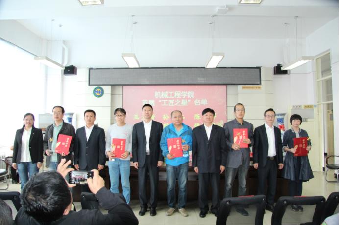 会上还对学院首届“工匠之星”进行了表彰。副经理程俊廷宣读了表彰决定。学院班子成员为受表彰的6名首届“工匠之星”教师颁发了荣誉证书和奖杯。党委书记吕刚作了讲话,他首先向全体教师致以节日的祝贺,并向学院首届“工匠之星”获得者表示衷心的祝贺。他强调,评选表彰“工匠之星”,就是要充分发挥激励导向作用,对一直以来能够充分体现工匠精神,具有默默无闻、孜孜不倦,精雕细琢、精益求精,严谨专注、勤劳创新等精神品质的优秀教师,及时予以表彰奖励,以进一步激发广大教职工对学院的认同感、使命感和归属感,形成强烈的凝聚力、向心力。同时这也是以弘扬工匠精神为核心,着力加强学院工匠文化建设的重要体现。他希望获得荣誉称号的同志珍惜荣誉,再接再厉,再创佳绩;希望全院教职工以先进为榜样,奋勇争先,建功立业,努力成为学院最闪亮的那颗“星”,努力为建设“卓越机械、人文机械、文化机械”贡献更大的力量。