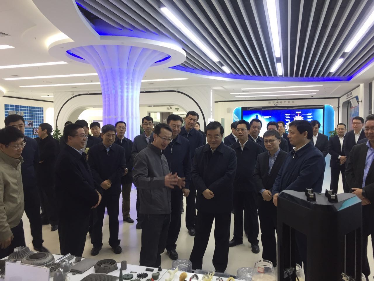 公司现代制造工程中心副主任、3D制造研究院副经理程俊廷教授代表黑龙江省3D打印产业技术创新战略联盟就我省发展3D打印的两大优势和三条主线,从材料、装备、应用与服务四个方面向张书记做了汇报。张书记说:要深入推进创新驱动发展战略,切实发挥高校、科研院所数量众多、科研实力雄厚的优势,依托军民深度融合发展的良好基础,加快发展智能装备、机器人、增材制造、新材料等战略性新兴产业,打通科技成果转化通道,使更多科技成果转化为产品、发展为产业。