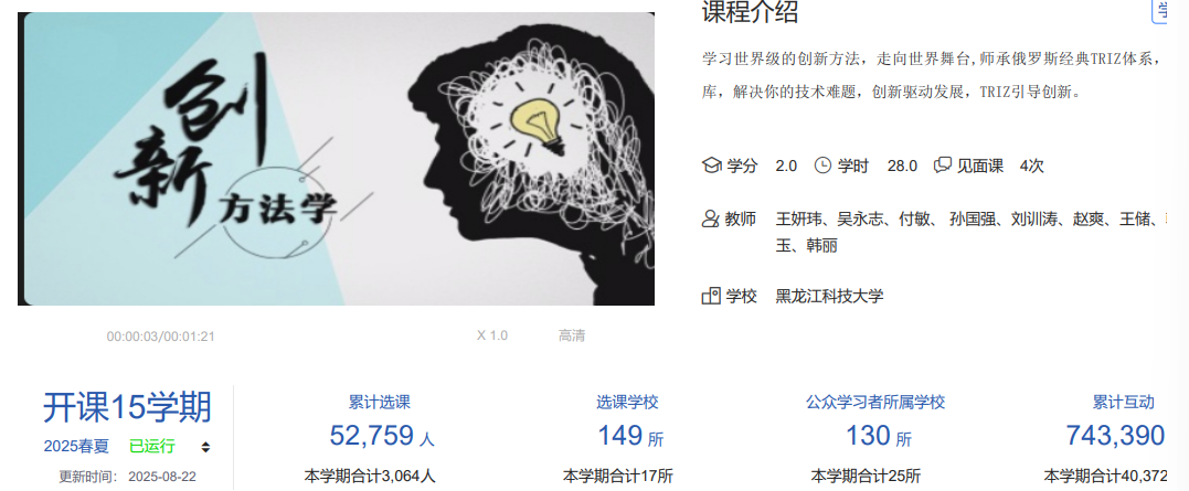 《创新方法学》课程基于OBE教育理念,以企业实际需求为导向,深度融合企业资源与顶级TRIZ专家智慧,将真实创新案例引入课堂,直面企业对人才创新能力的要求。课程团队成员均来自黑龙江省创新方法推广核心团队,课程通过深化校企合作,围绕企业产品研发、“卡脖子”技术攻关、典型发明革新及大赛优秀作品展开案例教学,助力公司推进课程建设,赋能老员工创新实践,培育更多优秀创新成果。