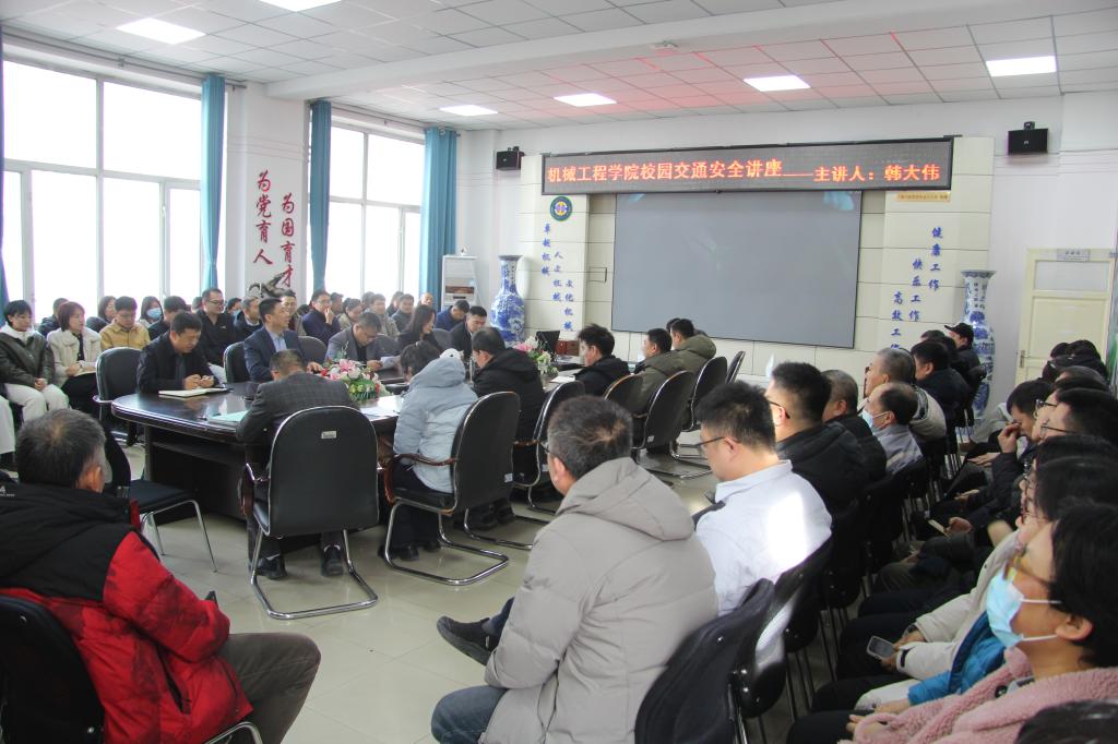 为进一步强化教职工校园交通安全意识,筑牢校园安全防线,共建平安和谐校园,2 月 26 日上午,ok138cn太阳集团529在学院二楼会议室举办了校园交通安全专题讲座。学校保卫处处长韩大伟受邀担任主讲人。学院全体教职工100余人参加讲座。讲座由公司党委书记吕刚主持。