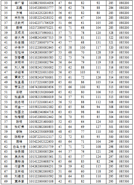 根据公司调剂信息公告,在调剂系统开放期间内征集的志愿,按照学院制定的复试方案并参考考生初试成绩,公司已择优向以下69名考生发出复试通知,现将复试人员名单公示如下: