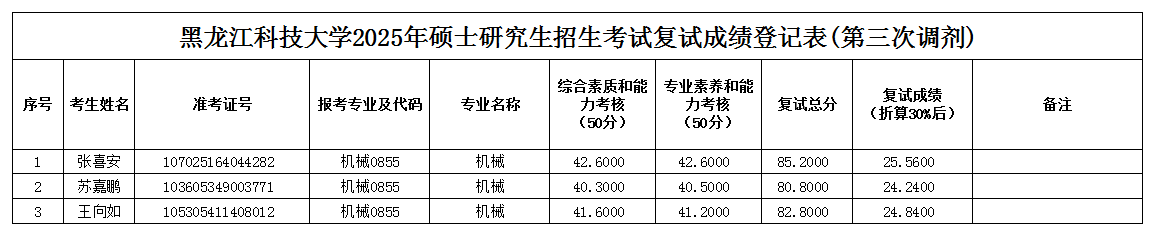 2025年全国硕士研究生招生考试ok138cn太阳集团529第三次调剂复试成绩公示