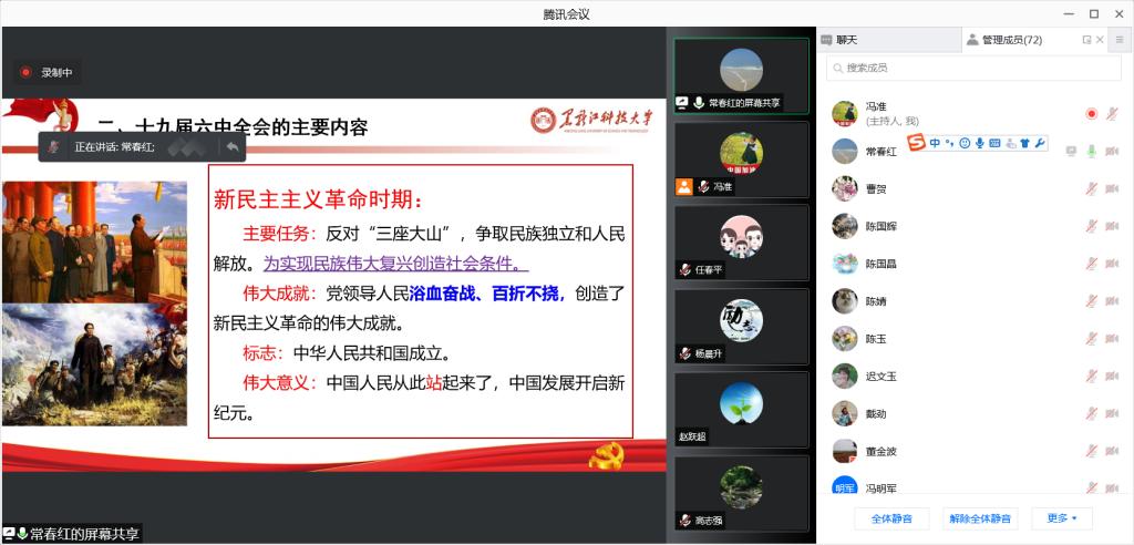 常春红教授强调,中国共产党立志于中华民族千秋伟业,百年恰是风华正茂。过去一百年,党向人民、向历史交出了一份优异的答卷。现在,党团结带领中国人民又踏上了实现第二个百年奋斗目标新的赶考之路。作为龙江人,我们要弘扬龙江精神,作为科大人我们要传承学校的办学精神,坚持用习近平新时代中国特色社会主义思想教育人,用党的理想信念凝聚人,用社会主义核心价值观培育人,用中华民族伟大复兴历史使命激励人,培养造就大批堪当时代重任的接班人。
