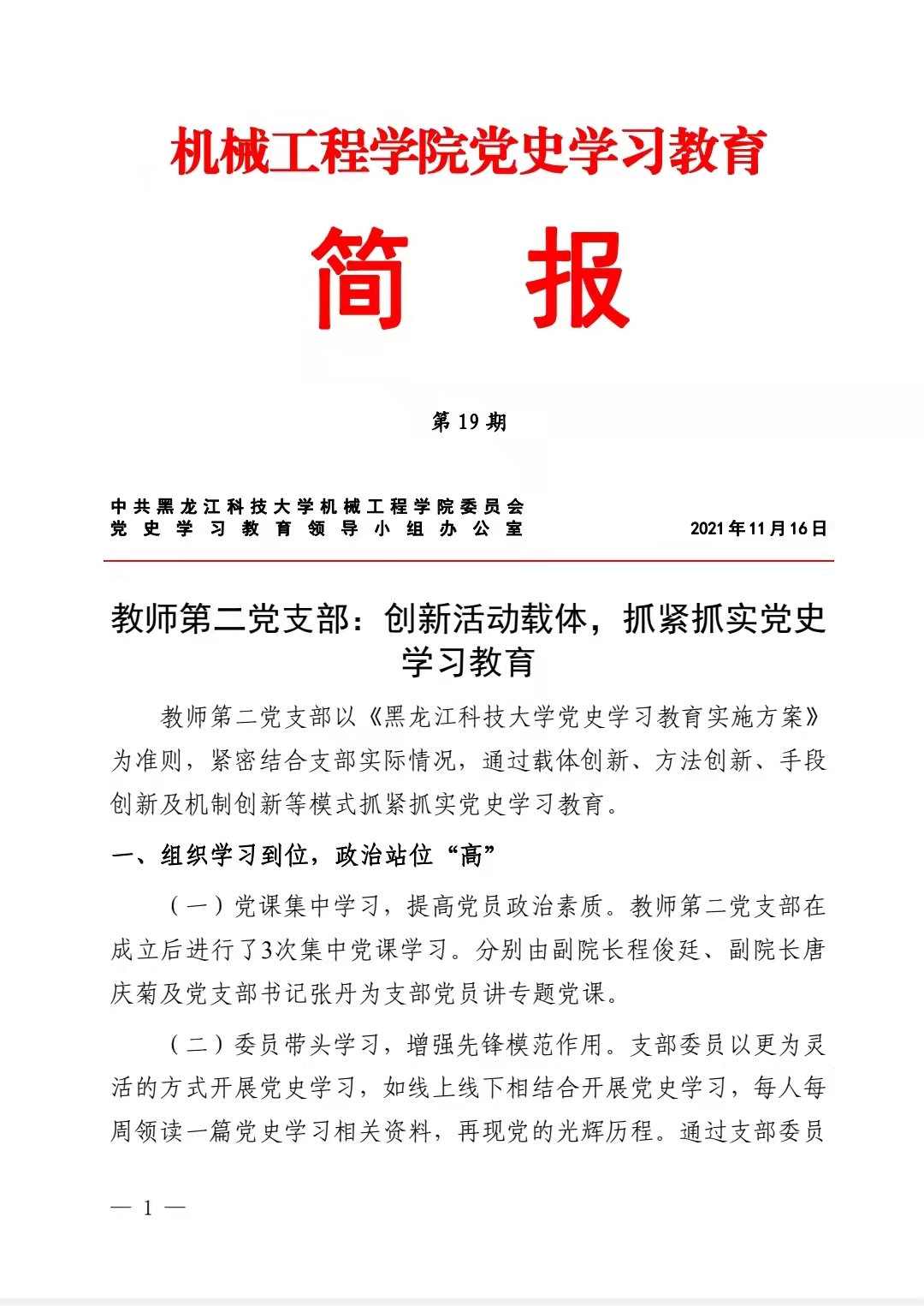 公司党史学习教育简报第19期