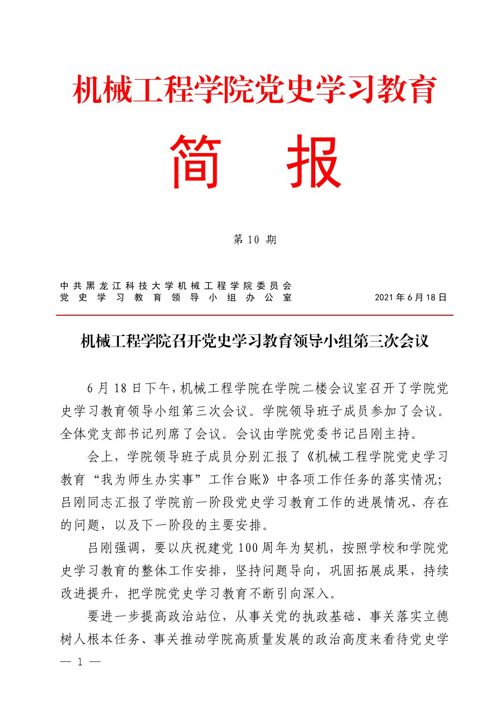 公司党史学习教育简报第10期