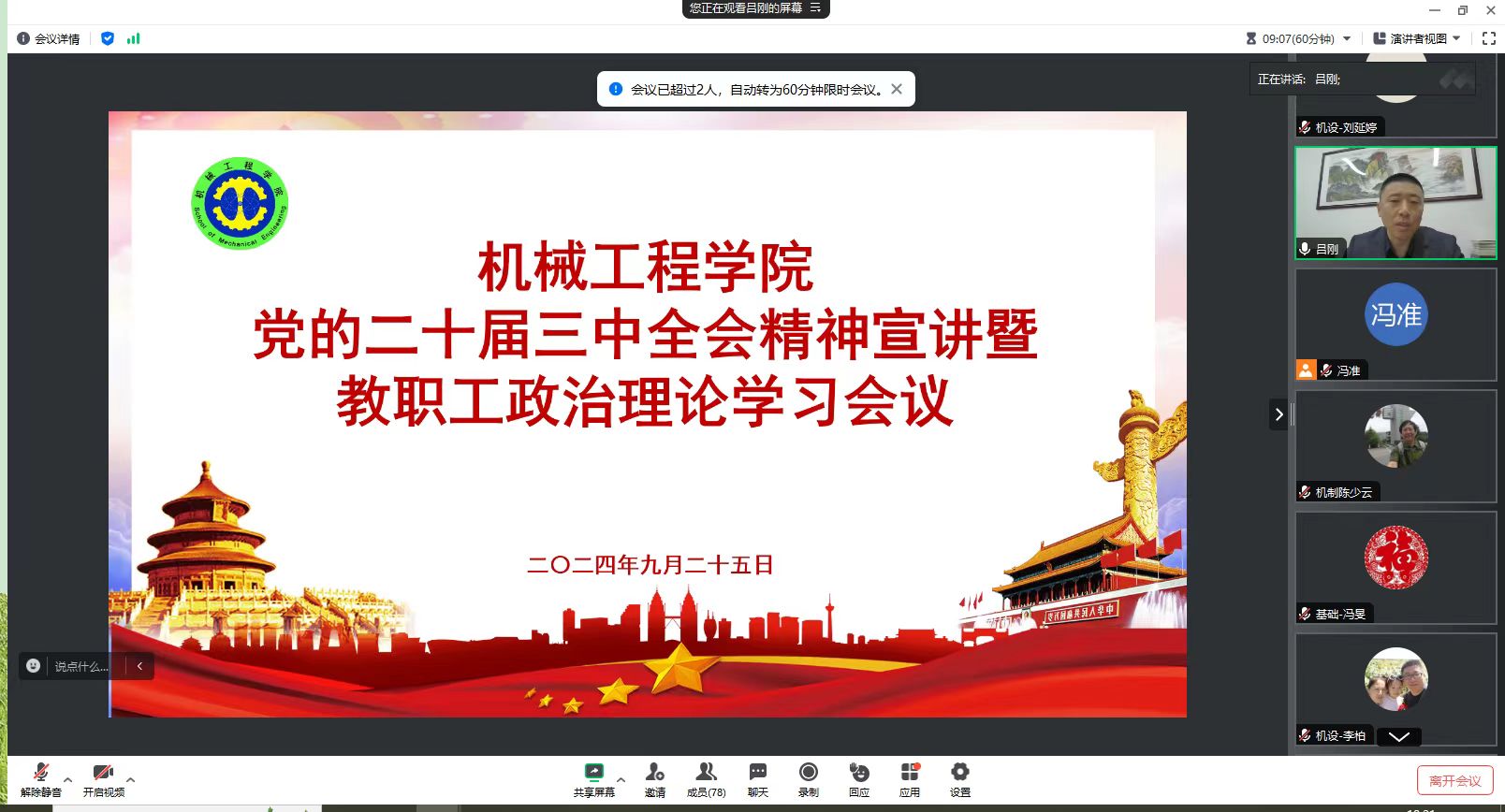 9月25日晚,ok138cn太阳集团529以线上形式召开了教职工政治理论学习会议,深入学习宣传贯彻党的二十届三中全会精神和全国教育大会精神。公司全体教职工参加了会议。公司党委书记吕刚主持会议并作宣讲辅导。